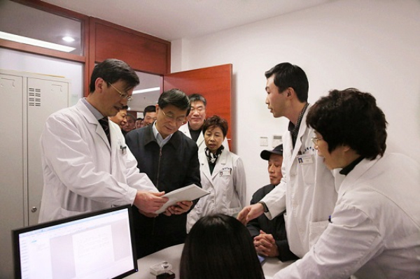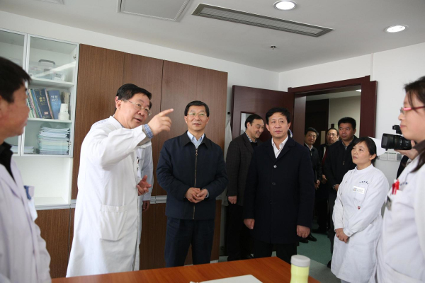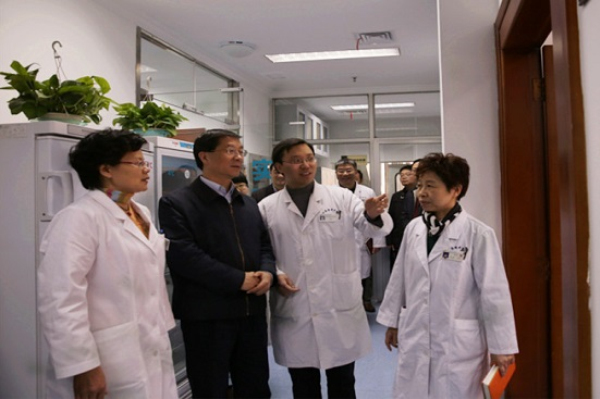 曹卫星副省长一行先后参观了肾科病区,中心实验室,名医堂和门诊肿瘤科等处,与临床教学科研人员亲切交谈,详细了解加强医科教协同发展的具体措施。