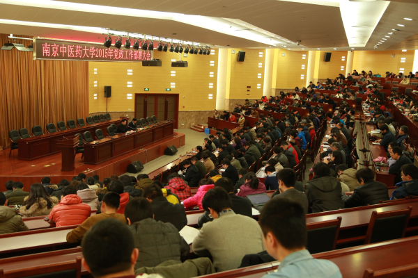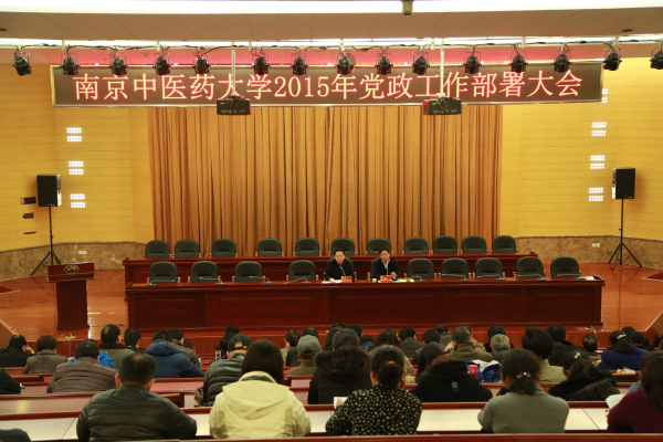 2月27日下午,南京中医药大学2015年党政工作部署大会在丰盛楼学术报告厅顺利召开。全体校领导,正副校级调研员,全体中层干部,副高以上专业技术人员,各民主党派负责人、各级人大代表、政协委员、无党派人士代表以及科级干部参加了大会。