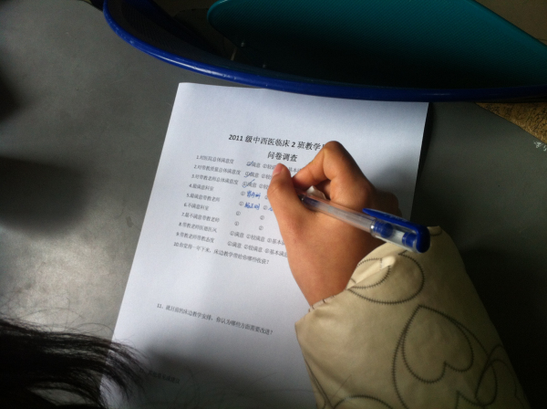 学生填写教学反思问卷调查表