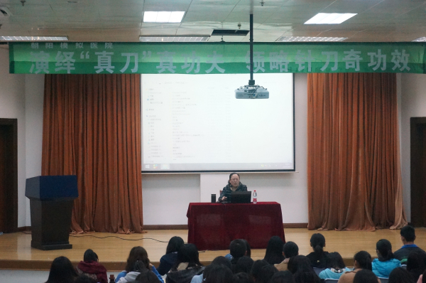 4月11日晚,朝阳模拟医院举办了一场主题为“演绎针刀真功夫,领略针刀传奇功效”的讲座。第二临床医学院陈梅教授担任主讲,为大家介绍针刀疗法。陈教授在临床上擅长运用针刀治疗颈椎病,腰椎间盘突出以及面瘫等疑难杂症,深受患者好评。