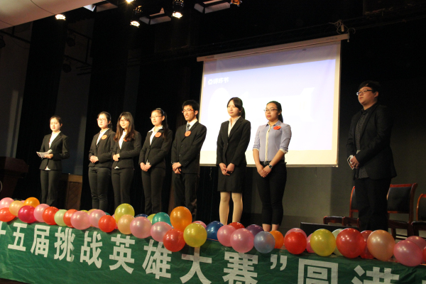 4月15日晚,名为第十五届“打造未来职场精英”——挑战英雄大赛决赛举行,来自先声药业、北京诺华制药、勃林格殷格翰、中国人保、正大天晴等知名企业的人力资源经理担任评委。决赛分为四个环节:职业规划、思维漫步、斗智营销和决战巅峰。第一环节中,选手们自制的充满创意的ppt展现了他们独特的风。第二环节中选手们面对一张张蕴含深意的图片而即兴做出的解说,选手们沉着应对、机智应变,体现出良好的知识储备。第三轮的斗智营销达到比赛的高潮,选手们尽力向自己选定的评委推销奇怪产品,评委也才思敏捷,幽默配合,双方互动使得现场气氛热闹非凡。最后一个环节,决战巅峰,成功晋级本轮的三位选手回答评委们一连串犀利的问题镇定自若,赢得评委们的欣赏和赞许。