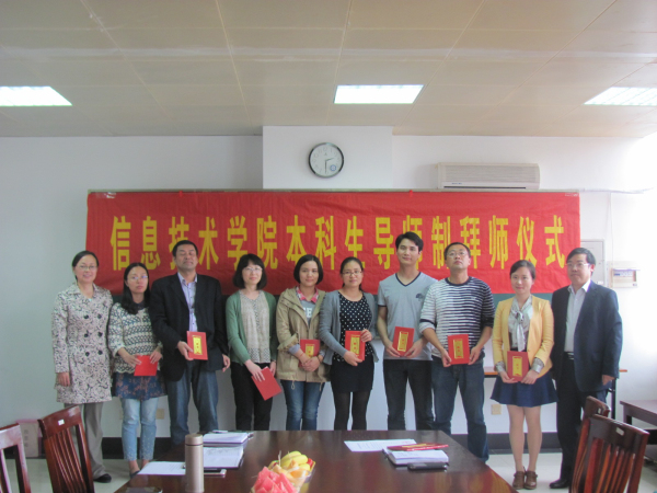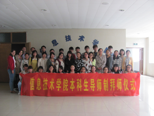 2015年4月29日,信息技术学院成功举办了计算机科学与技术专业2013级本科生导师制拜师仪式,学院胡孔法院长、蔡爱华书记、本科生导师及全体纳入“本科生导师计划”的学生参加了仪式,学工办主任沈静老师主持拜师仪式。