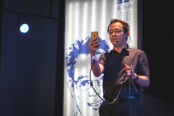 分享嘉宾、苏州梦想人软件科技有限公司CEO周志颖先生现场演示项目团队的最新创新产品