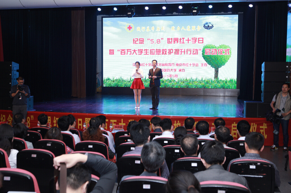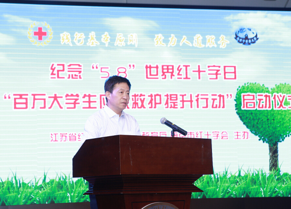 胡刚校长在欢迎致辞中指出,江苏省纪念“5.8”世界红十字日暨“百万大学生应急救护提升行动启动仪式”在我校隆重举行,是省市红十字会对我校红十字工作的肯定与支持。南京中医药大学作为医药类院校,培养“救死扶伤、治病救人”专业人才的目标与红十字会“人道、博爱、奉献”的精神高度契合。我校红十字会自1998年成立以来,立足社会服务和人才培养,加强组织建设、制度建设、阵地建设,开展宣传教育、学习培训和社会服务,充分挖掘红十字所倡导的人道主义和无私奉献精神与我校“仁德、仁术、仁人”教育理念的相通相融之处,把广泛、深入、持久地开展有特色的红十字活动作为提高学生整体素质、加强学生思想道德修养的重要载体,不断打造品牌活动,突显南中医特色,充分发挥红十字工作的社会效益和育人作用。
