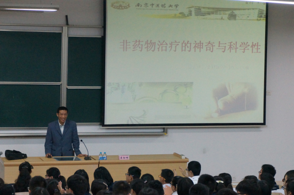 与此同时,我校“中医中药中学行”活动如火如荼地进行中。应江苏省天一中学的邀请,我校第二临床医学院姜劲峰副教授、邵海鸿老师和药学院邹立思老师参加了天一中学第23届科技节“名人课堂”活动,并为天一中学师生带去了《非药物疗法——中医的神奇与科学性》和《家庭常见中药鉴别、贮藏和使用》中医药科普讲座,为同学们揭开了中医的神秘面纱,增进同学们对中医药知识的了解,激发了同学们认识、学习和关注中医药和传统文化的热情。