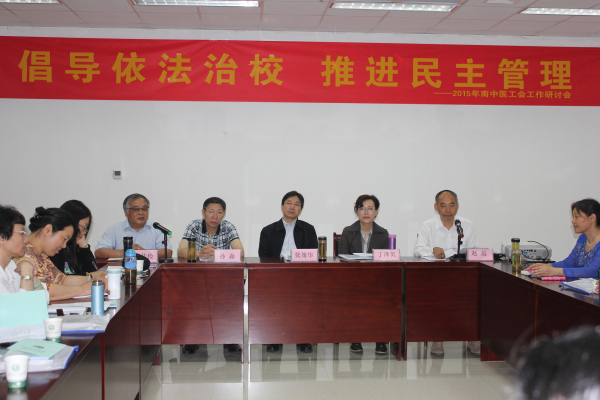 为进一步贯彻落实党的十八届四中全会精神和教育部《全面推进依法治校实施纲要》精神,5月16日校工会在翰林学院召开了以“倡导依法治校,推进民主管理”为主题的工会工作研讨会。会议邀请了江苏省总工会教育科技工会孙焱副主席、省总工会干校丁泽英教授指导研讨,校党委张策华副书记、各分党委、党总支、直属支部书记、各分工会主席四十余人出席了此次研讨会。