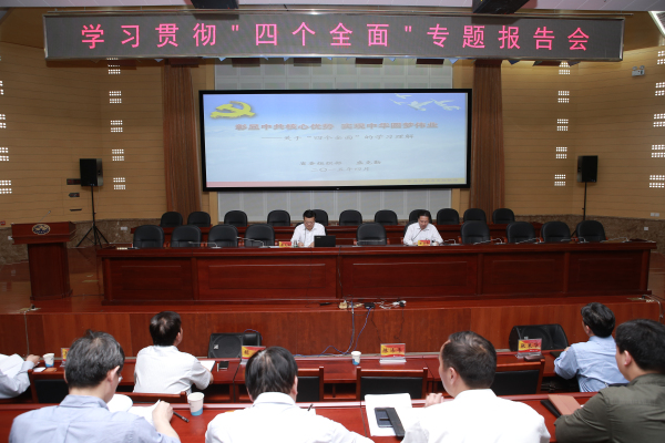 报告会上,盛克勤副部长以中外对“四个全面”战略布局的评价为切入点,从领导核心善于形成核心表述是党之强因、国之大幸;“四个全面”提出标志我党治国理政战略布局全面形成;深刻领会把握“四个全面”的逻辑关系和精神内涵;坚持以科学的辩证法统筹协调“四个全面”的贯彻落实等四个方面深度解读了“四个全面”战略布局。