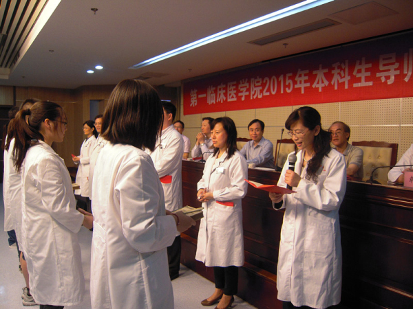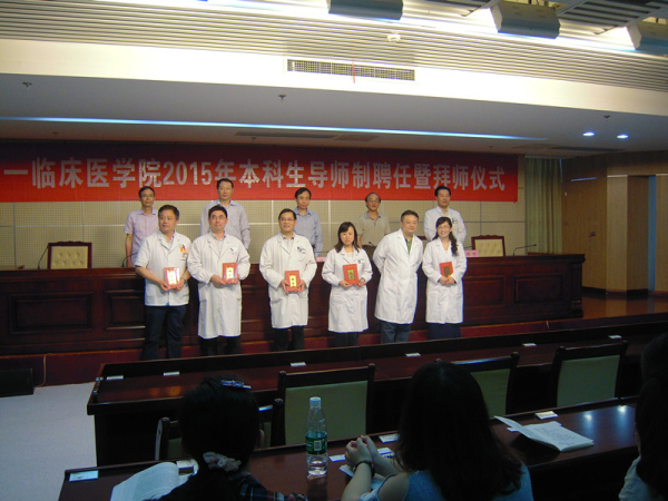 2015年5月25日下午17:30,第一临床医学院第十四批本科生导师制聘任及拜师仪式在附属医院南院学术报告厅召开。第一临床医学院院长汪悦教授、刘军副院长、过伟峰副院长等院领导、全体十四批本导教师、学生参加了本次大会。会议由薛建国副书记、副院长主持。