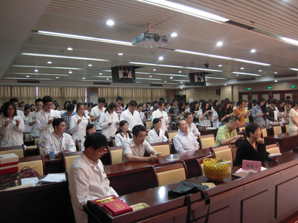 2015年5月25日下午17:30,第一临床医学院第十四批本科生导师制聘任及拜师仪式在附属医院南院学术报告厅召开。第一临床医学院院长汪悦教授、刘军副院长、过伟峰副院长等院领导、全体十四批本导教师、学生参加了本次大会。会议由薛建国副书记、副院长主持。