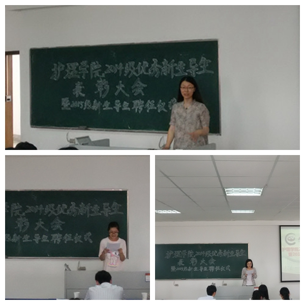 6月3日中午,护理学院在B12-213举行2014级优秀导生表彰大会暨2015级新生导生聘任仪式。护理学院党委蒋燕副书记、护理学院学工办老师们参加了此次表彰和聘任仪式,活动由学工办侯春秀老师主持。