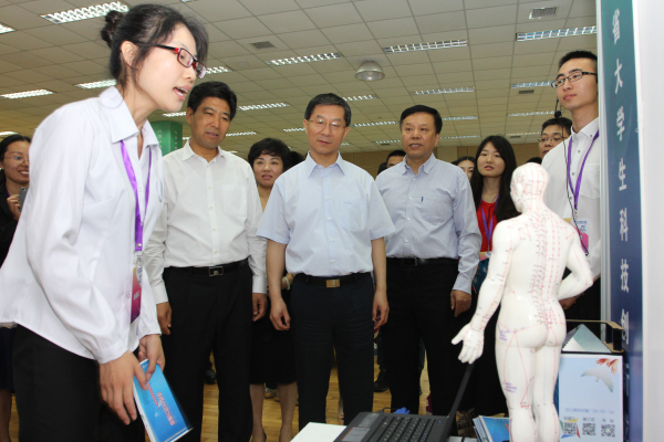 本届“挑战杯”省赛自今年2月启动以来,得到了省内愈百所高校的积极响应。通过校院两级比赛体系,本届比赛共收到99所高校申报的参赛作品423件,参赛作品涵盖机械与控制、信息技术、数理、生命科学、能源化工、哲学与社会科学等多个领域。参赛学校数、学生数、作品数均创历史最高。我校共选送9件作品参与此次竞赛,经过层层评比选拔,我校共有6件作品被推荐入选国赛。比赛期间,我校第二临床医学院大学生科技创新作品《经络穴位3D软件》被团省委推荐在全省大学生科技创新成果展览会中展示。