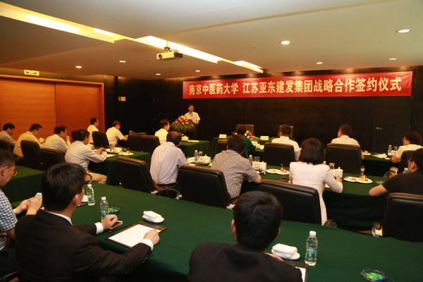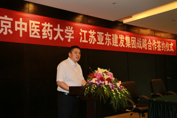 亚东建发集团高巍董事长在致辞中指出,南京中医药大学是新中国建校最早、科研成果显著、海内外影响深远的中医教育的高等学府。亚东集团是以房地产开发为主,涉足商业、旅游、高科技等多个领域的优秀民营企业,双方本着“强强联合,互惠共赢”的宗旨,共同建立产学研校企战略合作关系,不仅符合国家健康产业的发展方向,有利于推动全民健康事业,同时也是双方合作共同的理想追求,是整合资源优势、开拓健康产业新领域、造福广大群众、谋求开拓发展的创新之举。亚东集团将与南京中医药大学在养老产业、养生产业、健康旅游度假产业等领域紧密合作,各展优势,共创佳绩。