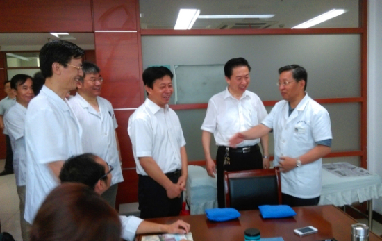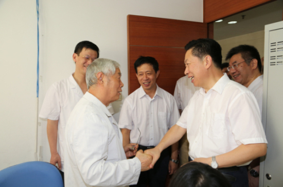校领导一行深入专家诊室、急诊大厅、药房、住院部、护理部等各区域,向坚守工作岗位的教职医护员工表达了亲切问候,对广大一线教职医护员工为医院和学校建设发展付出的辛劳、为人民身体健康作出的贡献表示了深深的敬意和感谢,并叮嘱大家合理安排好工作和休息时间,注意防暑降温、劳逸结合、保重身体。一、二附院有关院领导和处室负责人一同参加了慰问。