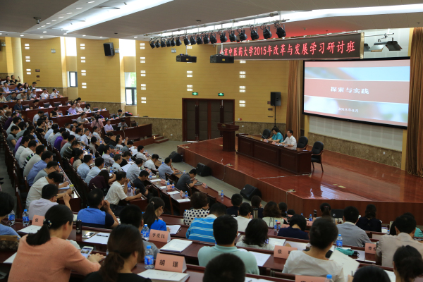 8月12日上午,我校2015年改革与发展学习研讨班在丰盛楼学术报告厅顺利开班。本次学习研讨班的主要任务是:深入贯彻落实学校第二次党代会精神,大力推进实施“人才强校、质量兴校”战略,进一步认清形势、明确方向、形成共识,为学校全面深化综合改革与“十三五”规划编制工作提供思想理论准备和组织工作基础。全体校领导,全体中层干部,第一、第二直属附属医院的院领导和有关职能处室负责人,全校各学科的学科带头人、各专业的专业负责人,各级人大代表、政协委员、各民主党派负责人,以及全体正科级干部、全体辅导员参加了学习研讨。