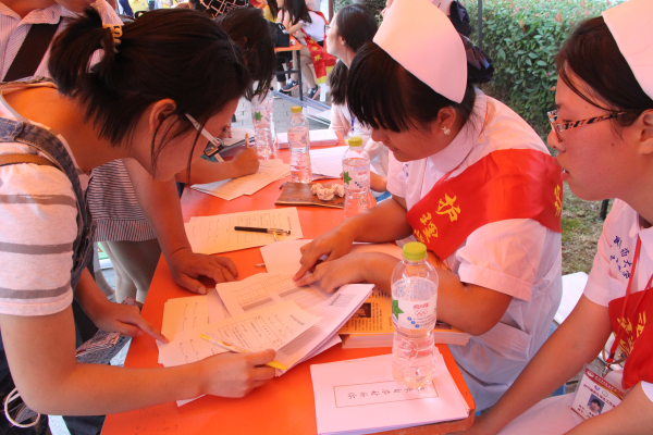 9月8日,为了了解新生的身体健康状况,我院特别邀请到江苏省中医院2012届实习生前来为新生进行体检,在优秀实习生的帮助下,体检顺利结束。