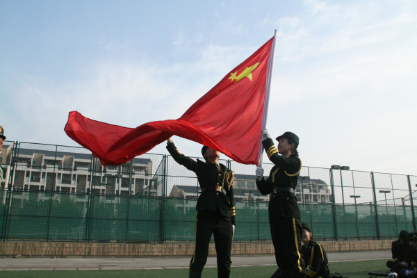 作为本次大比武高校中唯一一支全部由女子组成的国旗班方队,我校女子国旗班率先亮相,迎着朝阳队员们迈着铿锵的步伐走向国旗台,整齐的步伐,挺拔的身姿,英武中透着秀气的方阵惊艳全场。在激昂的《义勇军进行曲》中,升旗手振臂一挥,鲜艳的五星红旗徐徐展开,在阳光的映照下,在全体队员的注目中,迎着初升的太阳,在晨曦中迎风飘扬在操场的上空。紧随其后,29所省内高校国旗班分别展示了各自的风采。经过激烈的角逐,我校和东南大学等高校荣获江苏省高校国旗班比武一等奖。