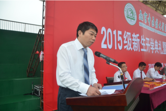 开学典礼中。2015级中医专业徐烨健、药学系中药学1302班级团支书沙之雅分别作为新生和高年级学生代表发言。翰林学院医学系闵文副教授作为教师代表发言,他表示学院全体教师将尽一切力量帮助同学们成才完成学业,希望广大新生能够勤奋学习,用艰苦努力为自己的青春年华画上完美的注脚。
