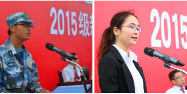2015级中医专业徐烨健、药学系中药学1302班级团支书沙之雅分别作为新生和老生代表发言