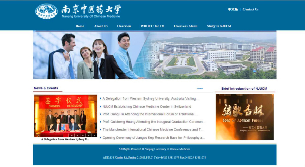 10月22日是世界传统医药日,在网络中心、国际合作与交流处、党委宣传部的共同努力下,我校英文版主页完成改版,正式上线。