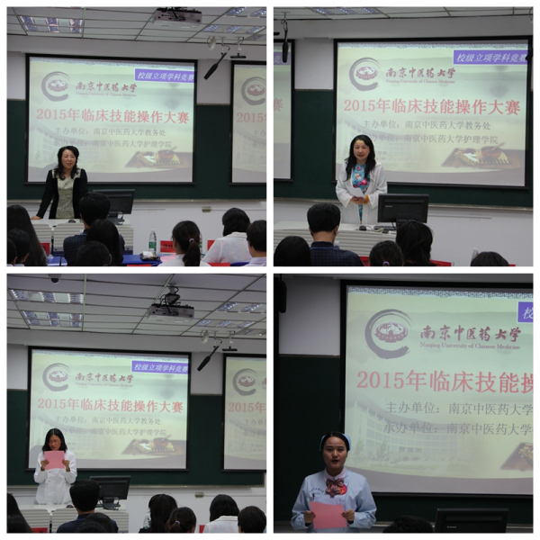 10月21日下午两点,2015年南京中医药临床技能操作大赛在护理学院国家级实验示范中心拉开帷幕,本次大赛作为校级立项学科竞赛,由教务处主办、护理学院承办,也得到兄弟院系的大力支持。参加此次活动的有南京中医药大学副校长、博士生导师徐桂华教授,护理学院党委姚小平书记,护理学院陈璇副院长,护理学院党委蒋燕副书记,教务处祖强老师,第一临床医学院分团委书记郁祥老师,护理学院各教研室、实验中心和学工办的老师们。