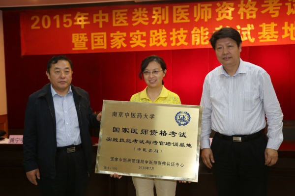11月13日,在广州中医药大学承办的2015“国家医师资格实践技能考试总结会”上,我校经过5月份初评与7月份复评,以评审成绩第一获得了全国第一块“中医类别”国家医师资格实践技能考试与考官培训基地牌匾,编号001。这是我校国家级中医临床实验教学中心继去年获得西医“临床医学类别”国家考试基地后获得的又一个国家考试基地称号,从而成为目前全国唯一一个拥有双基地称号的单位。