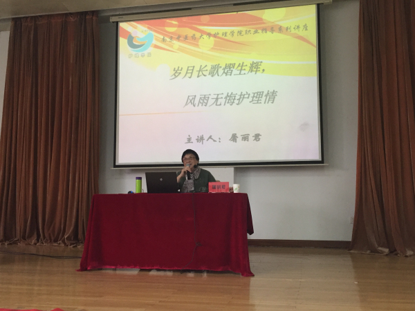 11月11日下午,护理学院邀请到了江苏省护理学会名誉理事长、南京脑科医院护理部督导屠丽君主任为全体15级护理新生开展主题为“岁月长歌熠生辉,风雨无悔护理情”的就业指导讲座。护理学院陈璇副院长、蒋燕副书记、学工办的全体老师和近三百名护理学生参加了这场极具教育意义的报告会。