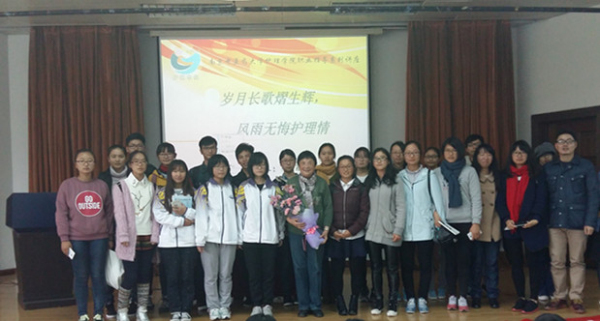 最后15级护理学院新生争相提问,屠主任结合社会背景和就业形势给我们的专业学习和职业技能提出了宝贵建议,并对我们的男同学们寄予厚望。全场十分热情,活动推向了高潮。演讲结束后同学们纷纷与屠主任合了影。