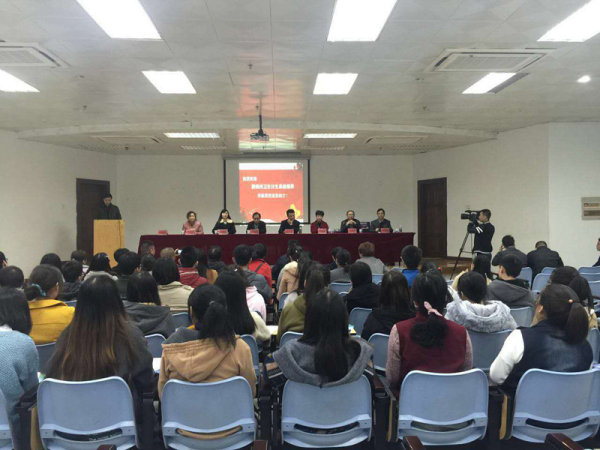 11月20日,贵州省黔南州在我校举行专场招聘宣讲会。本次招聘宣讲会得到了黔南州政府和当地各相关主管部门的高度重视。原挂职黔南州委常委、副州长、南京森林警察学院党委副书记、纪委书记林平、黔南州委组织部、黔南州人力资源和社会保障局、事业登记管理局、卫生和计划生育委员会、黔南州人民医院、黔南州中医院等黔南州相关单位和部门的负责人出席了招聘宣讲会。招聘宣讲会由南京中医药大学学生处副处长、招生就业办公室主任张同远主持。