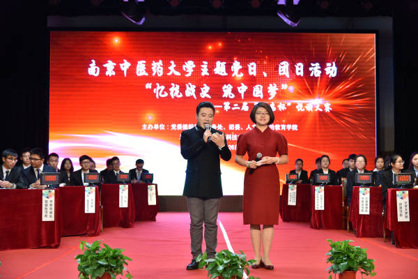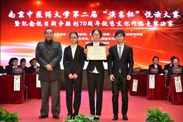 为弘扬革命先辈的光荣传统,让当代大学生重温抗日战争的光荣历史,进一步凝聚民族力量,增强民族自尊心、自信心和自豪感,由校党委组织部、教务处、学工处、团委、人文与政治教育学院共同举办的南京中医药大学第二届“淡安杯”悦读竞赛暨纪念抗日战争胜利70周年竞赛决赛于11月26日晚在大学生活动中心小剧场拉开帷幕。党委组织部王九龙部长、党委宣传部曹凯部长、学工处屠宏斐处长、团委杨羽书记、人文与政治教育学院张宗明院长、各学院学工书记、分团委书记、学工办老师出席了本次竞赛。同时作为“忆抗战史、筑中国梦”主题党日、团日活动,党员、入党积极分子代表400余人观看了本次竞赛。
