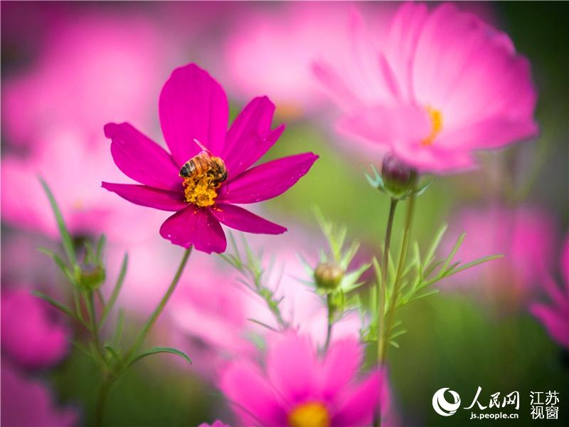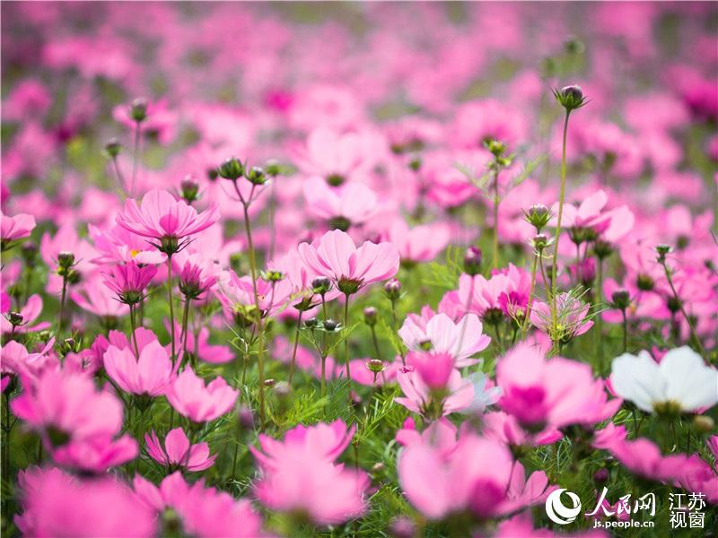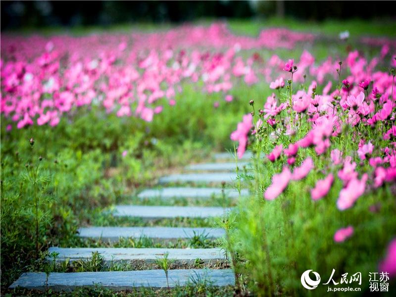 人民网南京11月25日电 (姚媛)近日,江苏多地秋雨绵绵,但在南京中医药大学仙林校区西片约2万平米的药用花卉区里,一大片格桑花正在怒放,形成一个五颜六色的花海,犹如人间仙境,吸引了大批学生和校外游客徜徉其中。