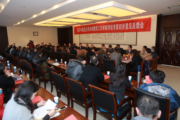 11月27日下午,南京中医药大学本科教学工作审核评估专家初步意见反馈会在行政楼315会议室召开。审核评估专家组全体成员,省教育厅苏春海副厅长及相关处室领导,我校全体校领导、正副校级调研员、各职能部门、各学院主要负责人及教学院长出席会议。会议由审核评估专家组副组长、南京大学副校长王志林主持。