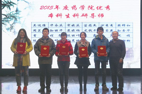 随后,王海波副书记对药学院2015年度本科生导师制工作进行了总结,并宣读了《关于表彰2014—2015学年药学院研究生科研助理培养模式“优秀本科生科研导师”、“优秀研究生科研助理”的决定》、《关于表彰2014—2015学年药学院本科生导师制“优秀指导老师”、“优秀培养对象”、“优秀学习团队”的决定》。全院共有吴达维等26位科研导师、7位优秀指导老师、26位研究生科研助理、41位优秀培养对象、8个优秀学习团队获得表彰。
