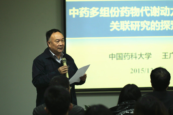 王广基院士结合课题组多年的研究经验,作了题为“中药多组分药物代谢动力学与药效关联研究的探索”的专题学术讲座。他从中药与化药的共通性——“质变代谢”、中药代谢的特殊性——“量变代谢”和“内化代谢”等方面通过各种实证阐释了中药“多向代谢”的新模式。基于中药代谢对中西药临床联合用药的调节作用、中药整体药效内源性物质基础与PK-PD标志物发现、中药反向药代动力学与新药发现等,展望了中药代谢与药效关联研究的前沿方法与策略。这为我们揭示中医药复杂体系的科学内涵与创新药物研发提供了很好的思路的方法。