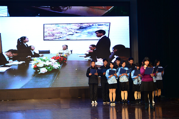 在展示汇报中,各团委巧妙构思、精心设计,展示中不仅有图文并茂的PPT和视频,还有独唱、合唱、朗诵、脱口秀及情景剧等多种形式,整个展示会充满创意和喜气祥和的气氛,使在场评审和观众为之眼前一亮。最终经贸管理学院团委、基础医学院团委和心理学院团委凭借新颖的形式、丰富充实的内容、凝练的表达赢得了师生评审委员们的肯定,荣登2015年度“杏苑共青风云榜”。校党委陈涤平书记和王长青副书记、副校长分别为获奖单位颁发了奖杯和证书。