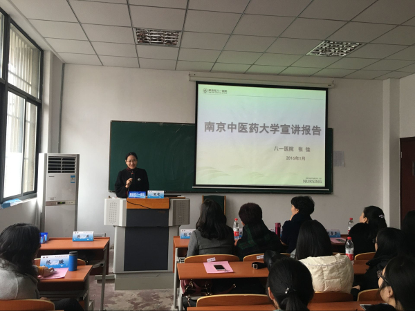 为了做好我校护理学院2016届毕业生的就业工作,引导大学生理性择业、就业,1月10日上午9:00,护理学院在汉中门校区举办了2016年首场医院招聘宣讲会。学院邀请了鼓楼医院、解放军八一医院、南京市儿童医院、南京市中医院、江苏省中西医结合医院、江苏省第二中医院、上海嘉会医院等七家单位护理部的主任进行集中宣讲。护理学院陈璇副院长、蒋燕副书记、学工办卞嵩、侯春秀老师和2016届百余名实习生参加了此次宣讲会。