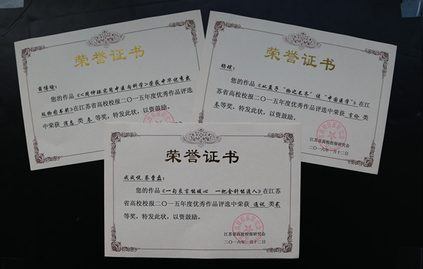 江苏省高校校报2015年度优秀作品评选工作于近日结束。优秀作品获奖目录于2016年1月14日在江苏省高校校报研究会2015年年会暨学术研讨会上公布。我校校报登载、选送的新闻作品中,《<周仲瑛实用中医内科学>荣获中华优秀出版物图书奖》(作者:薛博瑜)获得消息类三等奖,《从孟子“物之不齐”谈“中国医学”》(作者:杨璞)获得言论类三等奖,《一句良言能暖心一把金针能渡人——专访第二临床医学院张宏如老师》(作者:校报记者团戚成悅蔡曹磊)获得通讯类二等奖。
