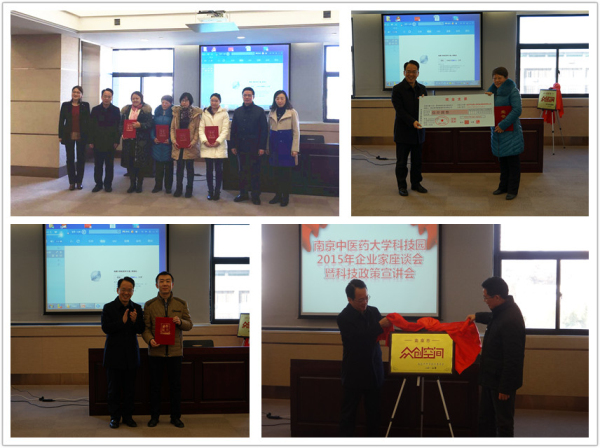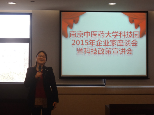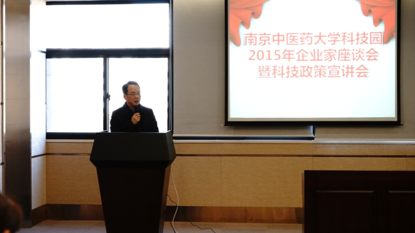 1月25日下午,南京中医药大学科技园2015年企业家座谈会暨科技政策宣讲会在国医堂5楼会议室召开。南京鼓楼国家大学科技园管委会高校园区联络处、鼓楼区科技局、人社局等部门领导、大学生创业园导师、我校程革副校长、宣传部、学工处、团委等部门领导、科技园企业主要负责人、大学生创业园企业负责人等共计60余人出席了大会。会议由大学科技园管委会办公室张世勤主任主持。
