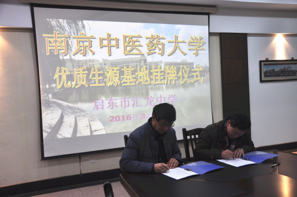 为进一步加强我校与中学的交流与合作,近日,我校招生就业办公室主任、学工处张同远副处长,药学院王海波副书记、经贸管理学院沈永健副书记、药学院田大将老师一行4人,赴启东市汇龙中学建立“优质生源基地”,并由沈永健副书记为该校高一年级教师开展了《教师礼仪与师生沟通技巧》的专题讲座。启东市汇龙中学校长徐辉、副校长顾学冲、教务处主任顾向忠出席了签约仪式。