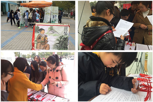 开幕式上,第一临床医学院学生会的同学通过视频、展板等形式,介绍了“中国国医节”的由来,阐述了近代中医曲折的发展历程,叙述了我校的发展历程和辉煌成就,展示了我校国医大师的风采,详细介绍了“国医文化节”系列活动的主要内容。活动现场,同学们朗诵中医经典、签名送祝福、赠送精美国医文化节特色书签,受到在场同学和老师的一致好评。