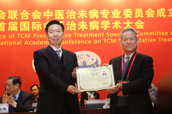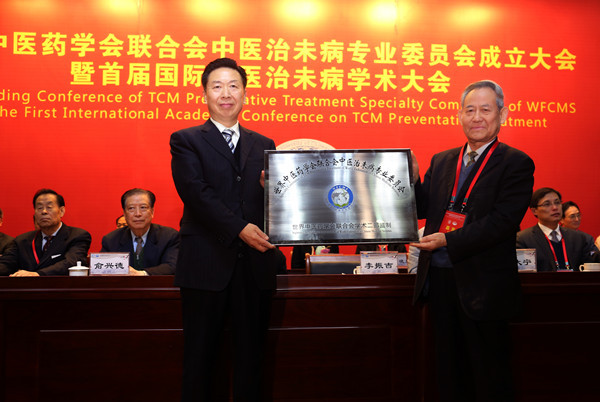 世界中医药学会联合会创会副主席李振吉先生为中医治未病专委会授牌并颁发会长证书