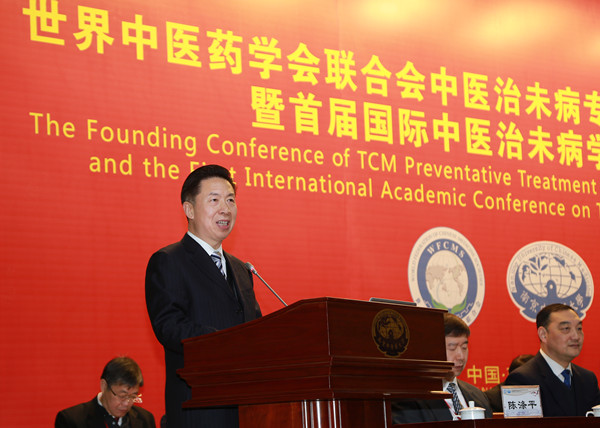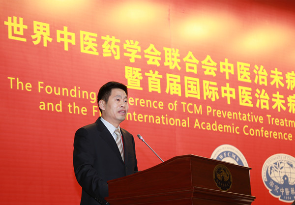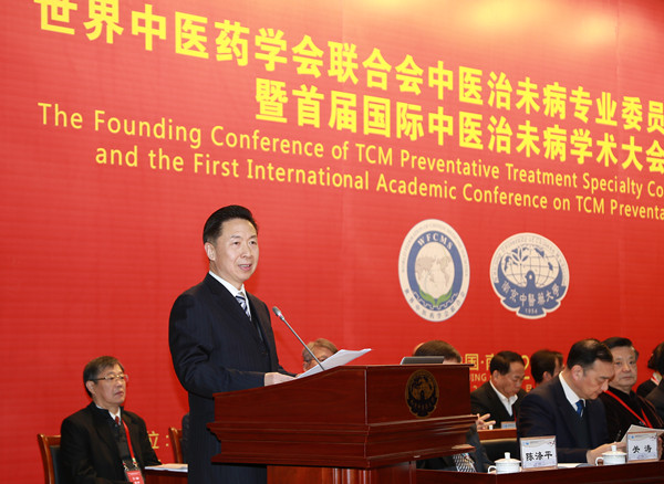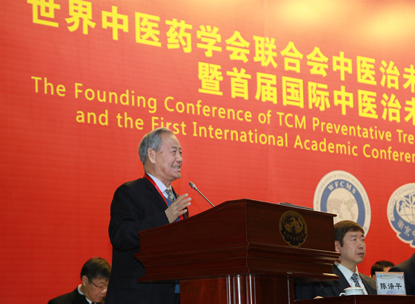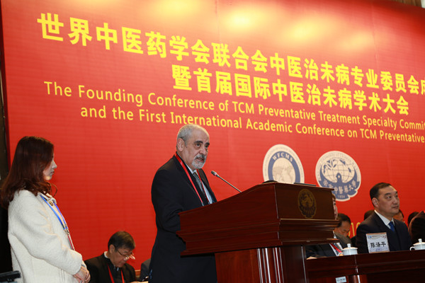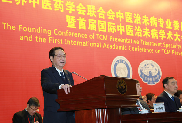 陈涤平教授代表世界中医药学会联合会中医治未病专业委员会第一届理事会致辞
