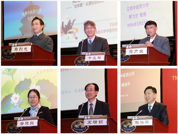 成都中医药大学马烈光教授、香港浸会大学协理副校长卞兆祥教授、江西中医药大学蒋力生教授、北京中医药大学副校长谷晓红教授、日本中医药研究会学术部部长宋靖钢博士、南京中医药大学陈涤平教授作主旨报告