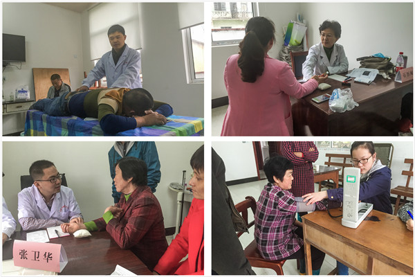 本次活动邀请了我校石历闻、张卫华、高梓珊、范小涛四位老师开展义诊,吸引周边村民纷纷慕名而来。活动现场,患者在志愿者的引导下有序候诊,并进行血压测量等身体检查。诊室内,石历闻、张卫华等老师不辞辛苦,耐心细致地询问村民们的健康状况,把脉诊疗并开出对应处方,细心嘱咐村民各方面注意事项;高梓珊、范小涛老师发挥专长,对症施针,让村民见识针灸、艾灸治疗的神奇。推拿室内,专家们为前来就诊的患者进行推拿和针灸治疗,,受到经常从事体力劳动而导致的颈腰椎疼痛的村民们的欢迎。