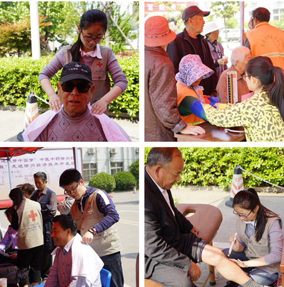 在随后的科普宣传和义诊活动现场,气氛非常活跃,秩序井然。我校专家阵容强大,汪悦、戴慎、陈仁寿、李益生、周春祥、姚映芷、叶放、潘涛、姜劲峰、吴云川十位专家为群众现场诊疗,此外基础医学院的大学生志愿者现场为群众推拿、拔火罐、艾灸、耳针、量血压。专家们耐心地询问着每一位咨询者的情况,根据症状及他们的叙述,或是当场开具中药处方,或告知诊治方案,提出进一步就医的建议。活动一直持续到中午一点方才结束,仍有不少群众围在诊桌前不肯离去。