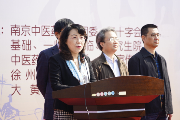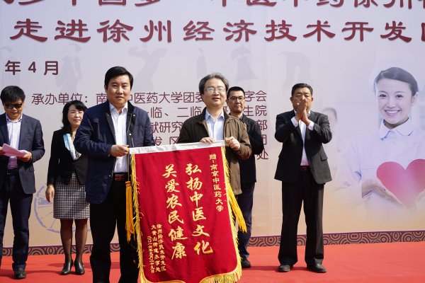 徐桂华副校长在讲话中指出,“农民健康百村工程”是学校社会服务诸多品牌项目中的一个典型代表,南京中医药大学广大师生充分发挥以中医药为特色的专业优势以及青年志愿者的人力资源优势,通过这一志愿服务平台,开展大型义诊、健康宣教、医疗合作、文化传播等活动,受到基层群众的广泛关注和普遍欢迎。徐州有着深厚的中医药文化底蕴,相传黄帝的后裔彭祖,在徐州首创药膳食疗和较早提出了养生理念。名医华佗曾长期在徐州求学行医,首创用全身麻醉法施行外科手术,被后世尊为“外科鼻祖”。南中医人将继续追寻和弘扬博大精深的中医药文化,让广大人民群众进一步了解中医药文化科普知识,体会到中医药悠久的历史、科学的理论、独特的方法、良好的疗效,让中医药更广泛地进入农村、进入社区、进入家庭,为维护人民健康服务,树立南京中医药大学的良好形象。