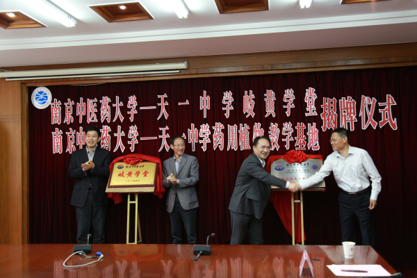 随后,双方共同为南京中医药大学——天一中学岐黄学堂、南京中医药大学——天一中学药用植物教学基地揭牌。