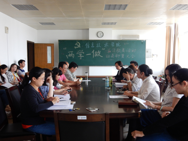 5月18日下午2:00,信息技术学院在学院会议室召开“学党章党规,学系列讲话,做合格党员”学习教育(以下简称“两学一做”学习教育)动员部署大会。会议由学院党总支蔡爱华书记主持,全体党员参加大会。