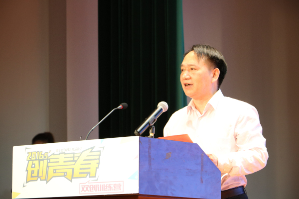 开营仪式上,黄桂成副校长致欢迎词。黄校长代表学校向团省委在我校开展此次活动,为广大师生提供与商业精英、大咖以及企业家代表面对面交流这样的机会表示感谢,同时也简要介绍了我校开展创新创业教育的基本情况。团省委蒋敏副书记在讲话中充分肯定了我校在大学生创新创业教育、服务青年创新创业方面的举措与成绩。她表示此次双创周活动,就是为全省双创青年举办的一次盛会,目的就是为广大双创青年搭建更为广阔的风采展示、培训辅导、资金对接平台,让青春年华在双创浪潮中焕发出绚丽光彩。