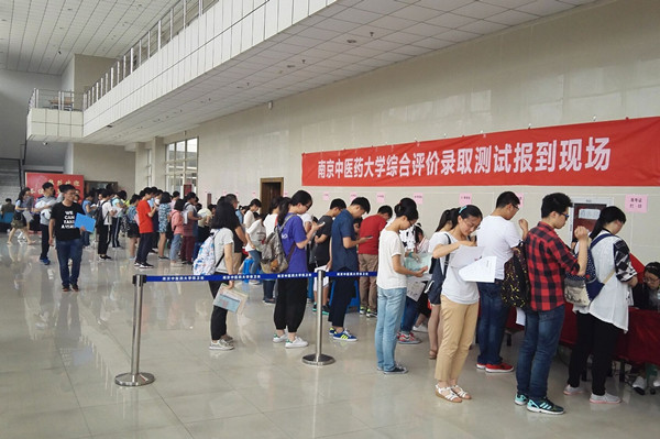 今年综合评价录取报名采取个人自荐为主、教师或专家推荐为辅的形式,与高中人才培养有效衔接。自报名工作开展以来,考生反响强烈,报名考生1455人,资格初审合格997人。6月11日,参加测试的考生前往我校仙林校区大学生活动中心报到,报到现场分为报到区、财务收据领取区、资格审核区、准考证打印区、资料发放区等各个区域,各区域间分工协作,布局紧凑。报到当天,天气炎热,报到现场还专门为考生和家长分别开辟休息区。各位考生在各区域志愿者的引导下,逐一完成相应报到流程,现场秩序井然。