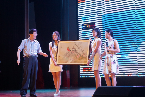 紧接着,姚小平书记代表学院接受毕业生的临别赠礼。画中枝头并立、欲展翅高飞的的双鸟频频回望,象征着毕业生对母校的眷恋及对学院悉心栽培的感恩之情。姚书记激励同学们努力生活、努力工作,创造一个更加美好的未来。